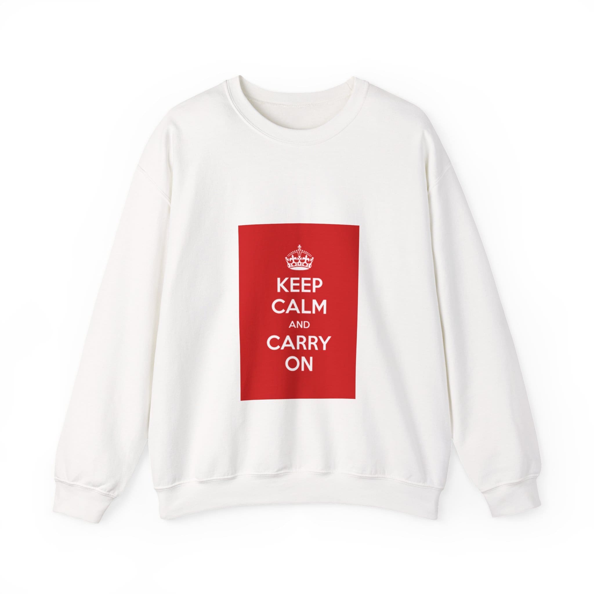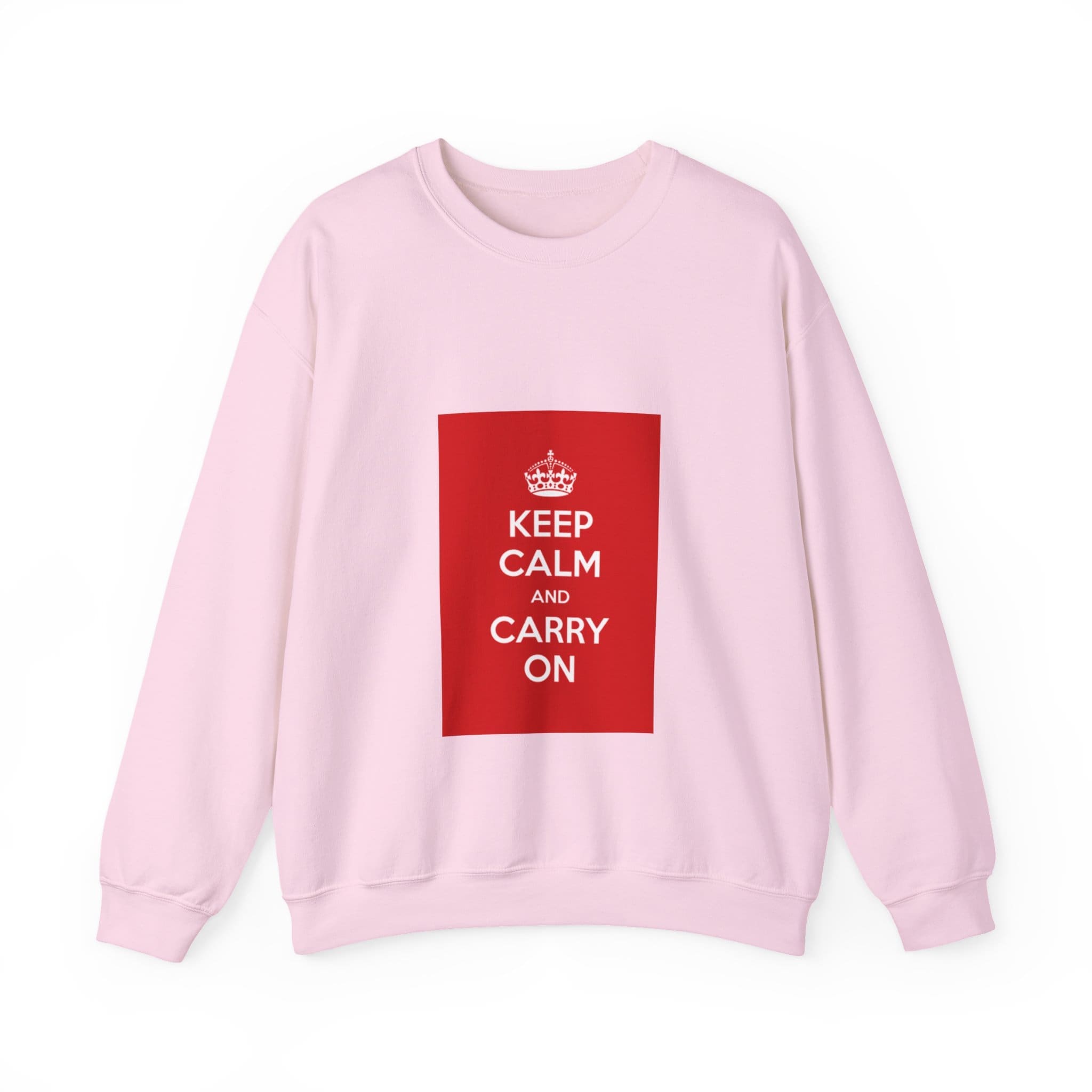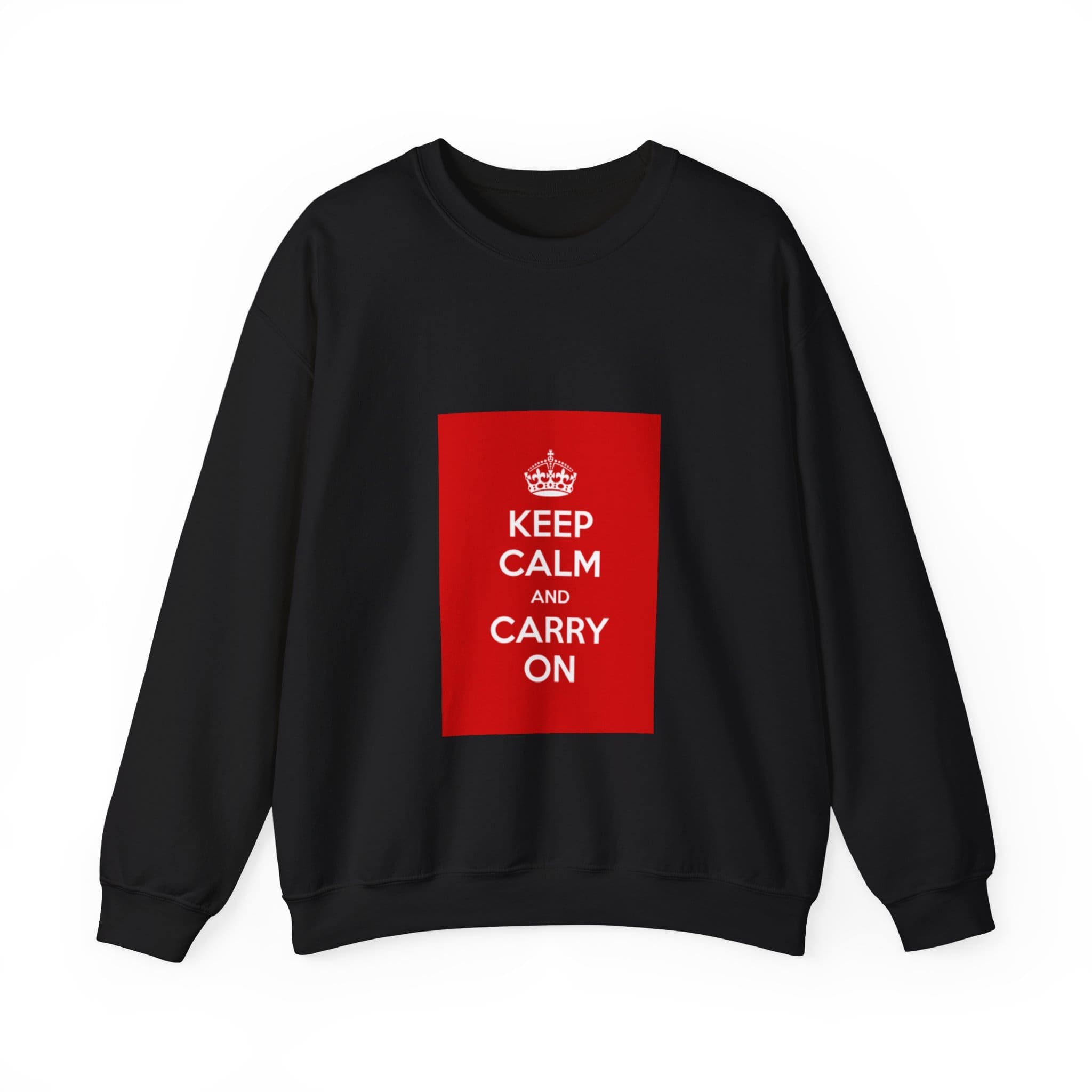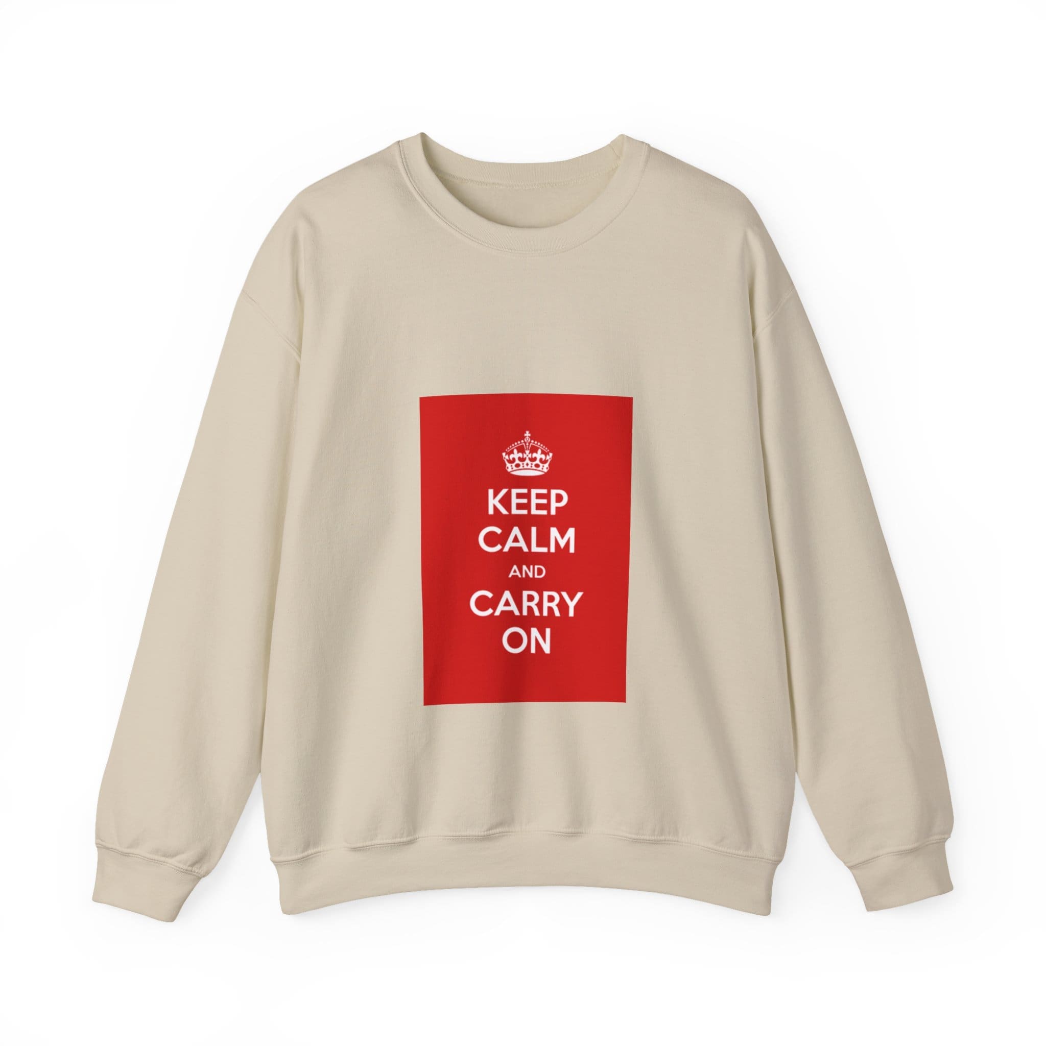 This cozy crewneck brings quiet confidence to your everyday rhythm. Built from a medium-heavy cotton-poly blend, it feels substantial without weighing you down. The classic fit and soft ribbed collar settle in like an old friend, while the iconic “KEEP CALM AND CARRY ON” panel in bold red reads like a steadying reminder on hurried days. Wear it on slow mornings with coffee, layered for chilly commutes, or as the go-to piece for relaxed gatherings — it smooths the edges of a busy life and keeps the mood grounded.