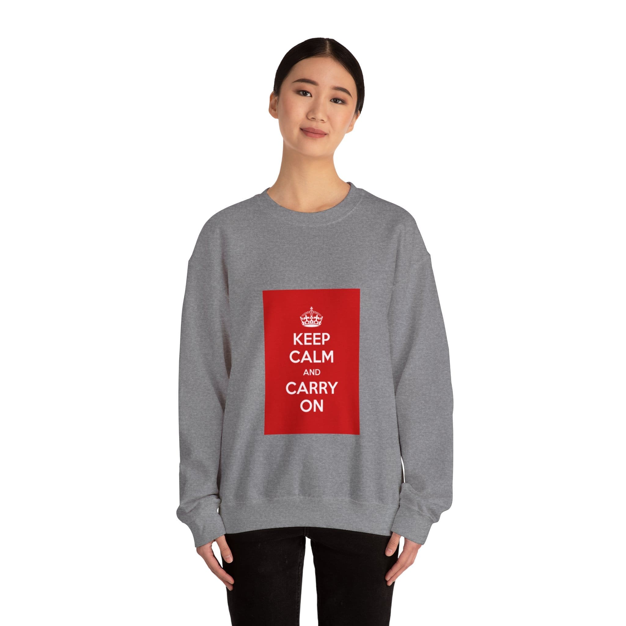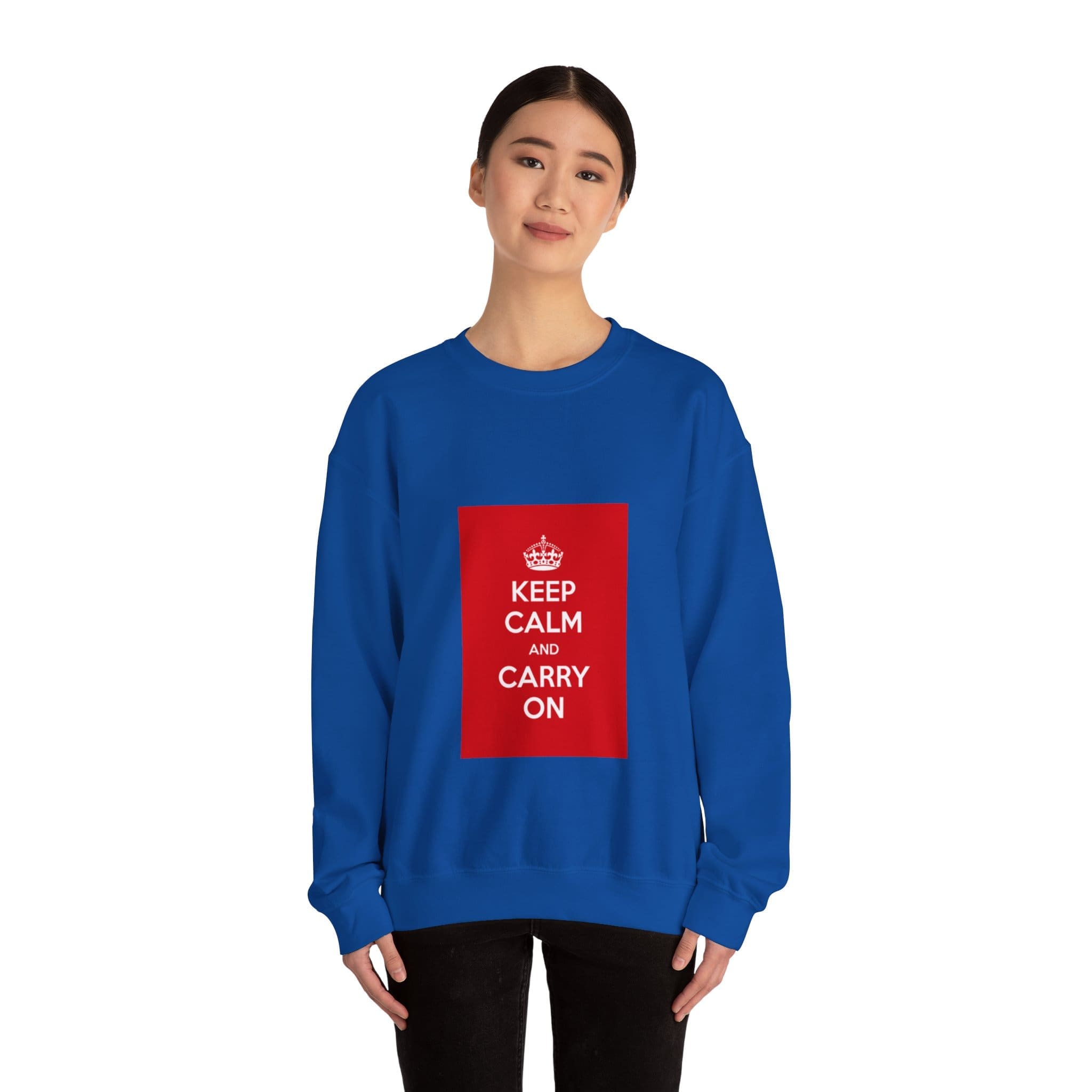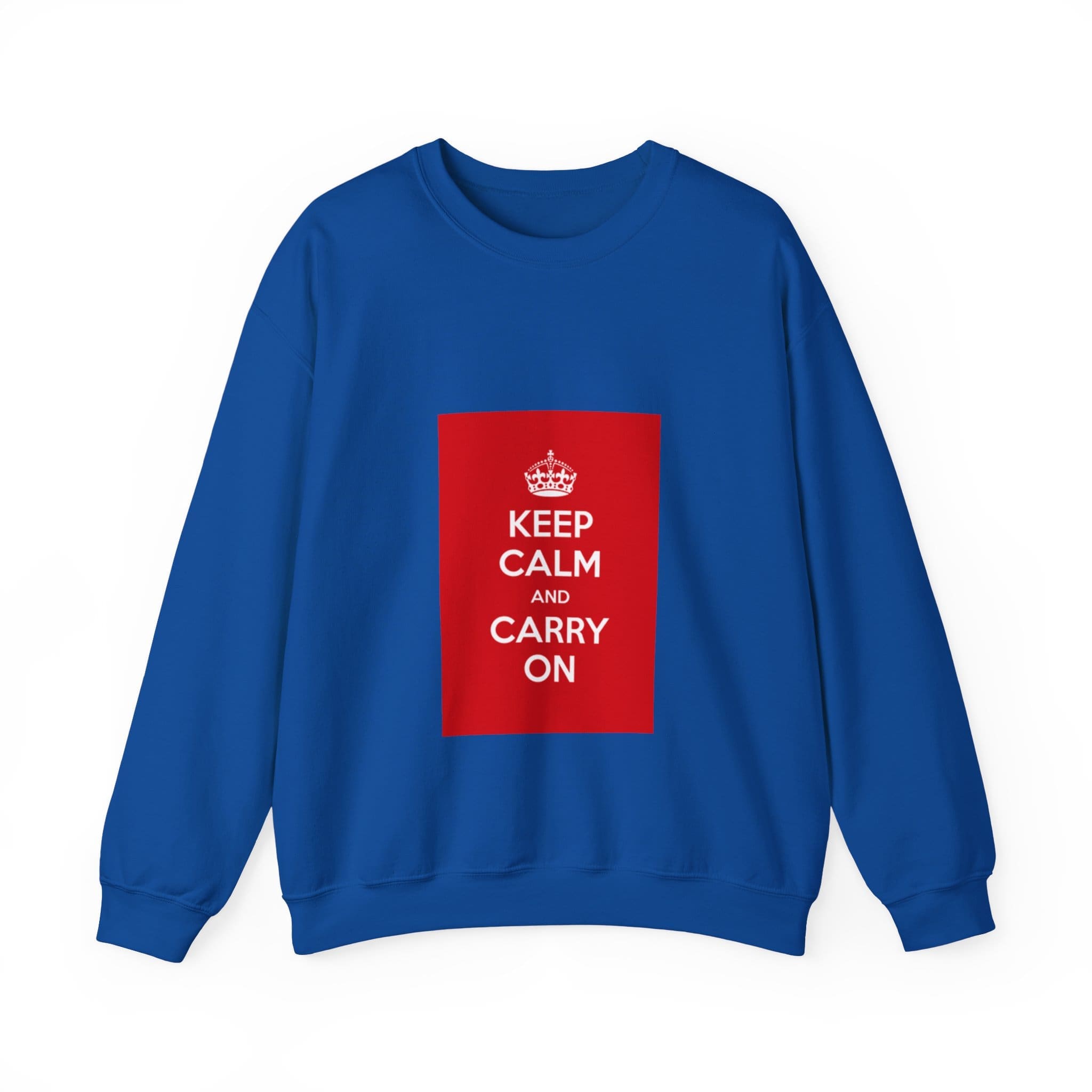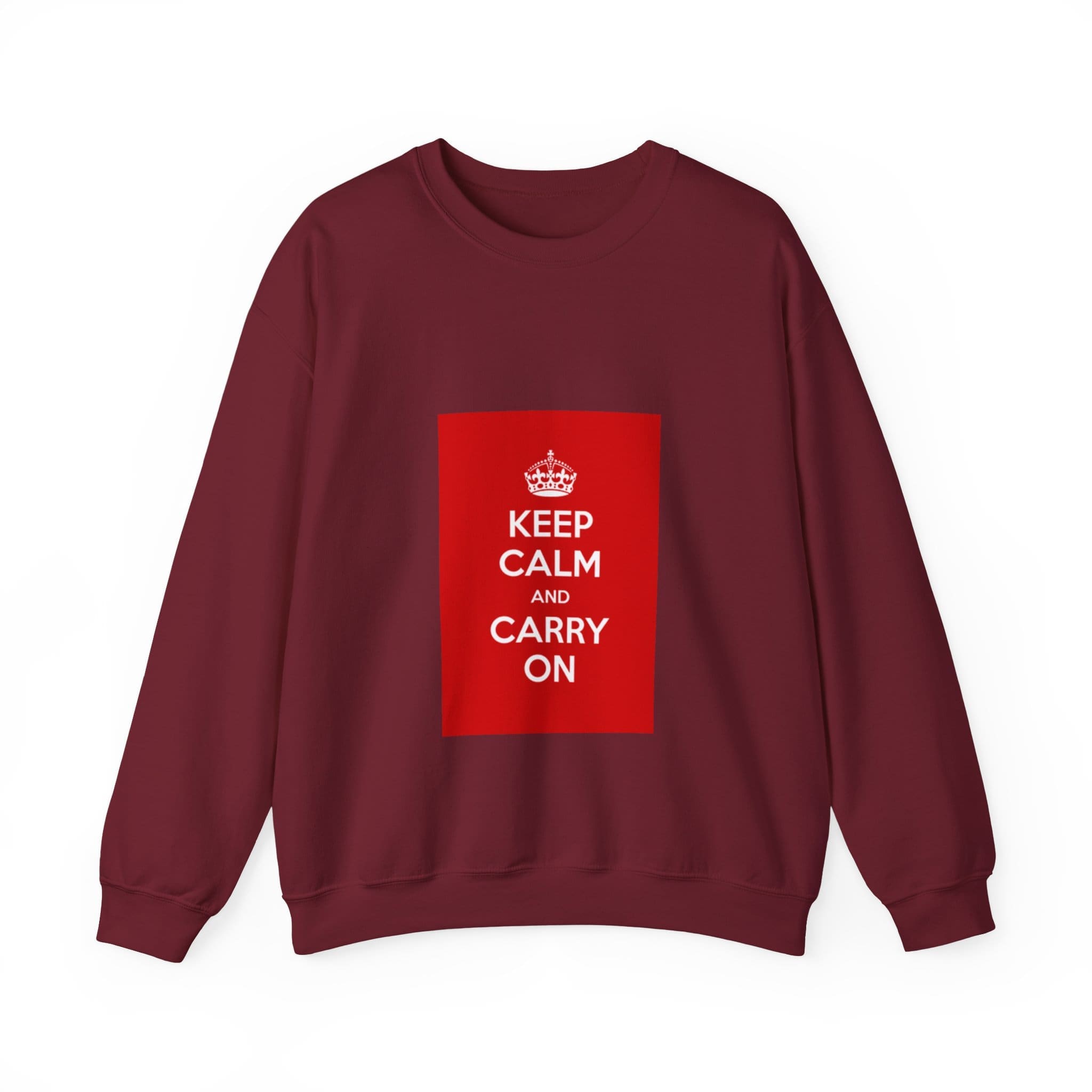 This cozy crewneck brings quiet confidence to your everyday rhythm. Built from a medium-heavy cotton-poly blend, it feels substantial without weighing you down. The classic fit and soft ribbed collar settle in like an old friend, while the iconic “KEEP CALM AND CARRY ON” panel in bold red reads like a steadying reminder on hurried days. Wear it on slow mornings with coffee, layered for chilly commutes, or as the go-to piece for relaxed gatherings — it smooths the edges of a busy life and keeps the mood grounded.