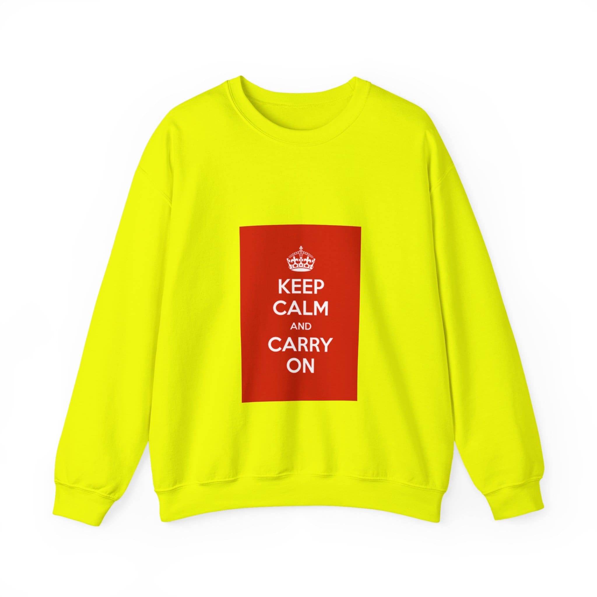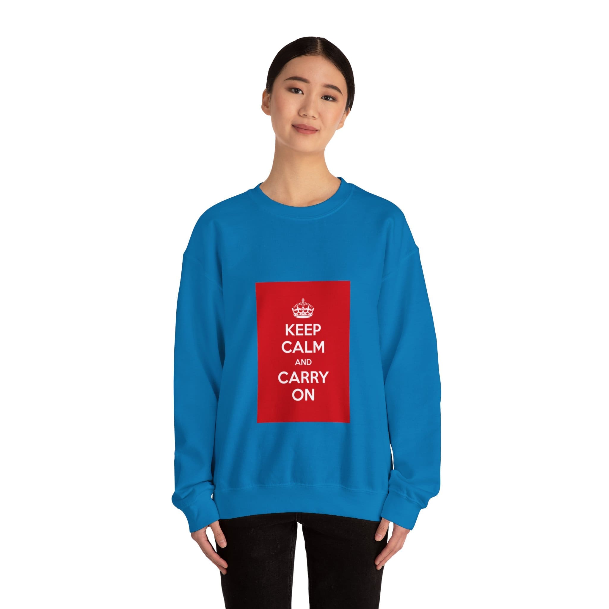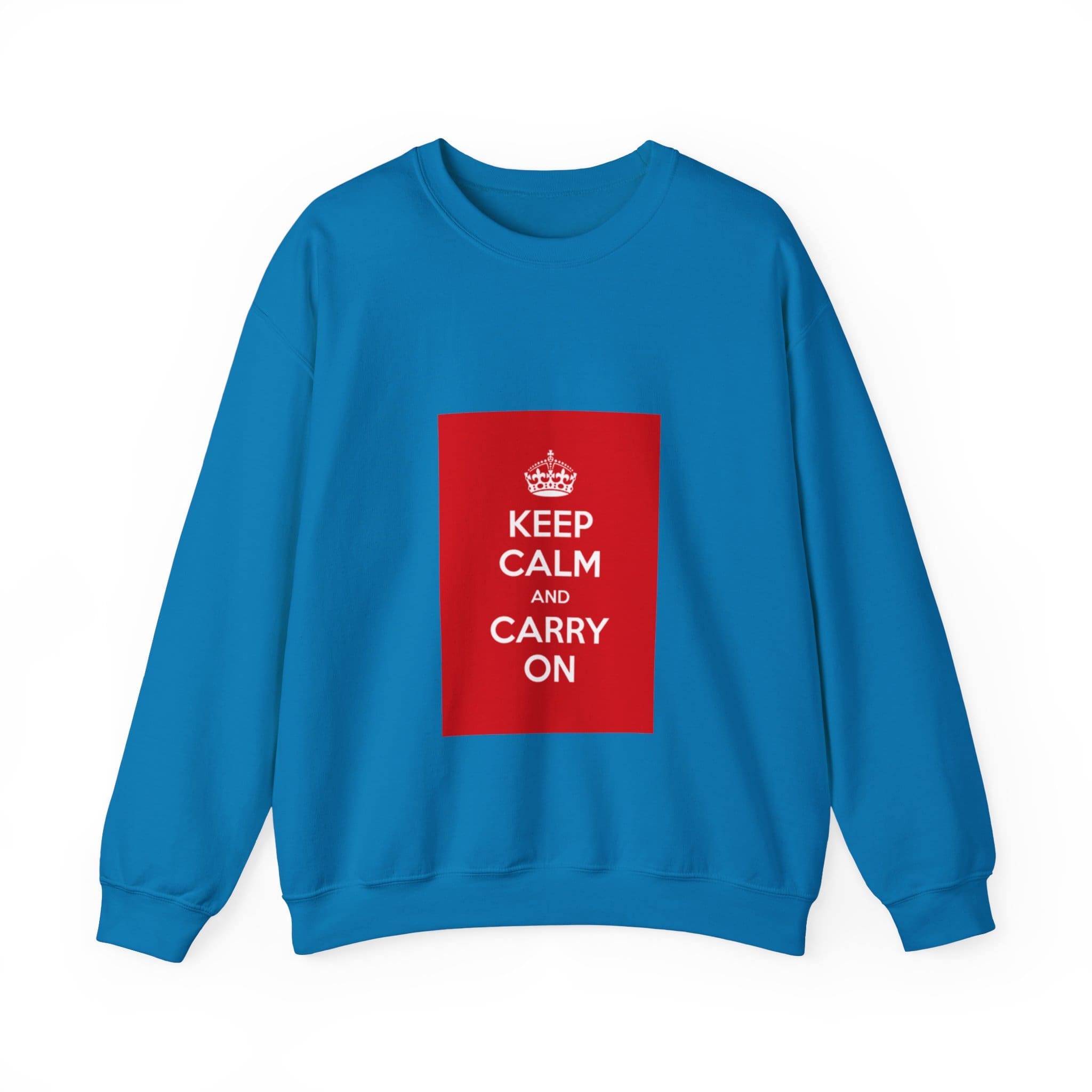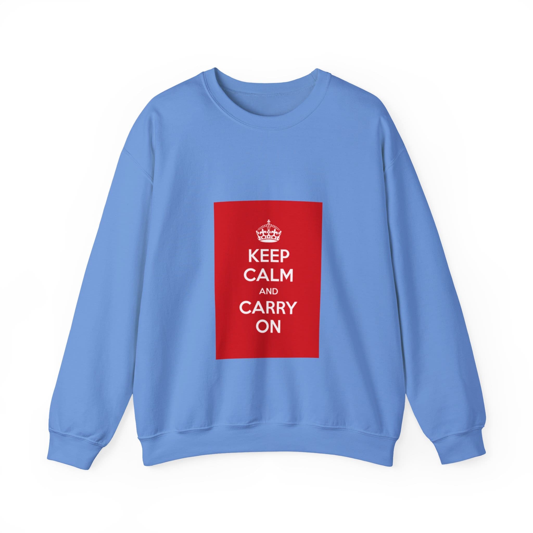 This cozy crewneck brings quiet confidence to your everyday rhythm. Built from a medium-heavy cotton-poly blend, it feels substantial without weighing you down. The classic fit and soft ribbed collar settle in like an old friend, while the iconic “KEEP CALM AND CARRY ON” panel in bold red reads like a steadying reminder on hurried days. Wear it on slow mornings with coffee, layered for chilly commutes, or as the go-to piece for relaxed gatherings — it smooths the edges of a busy life and keeps the mood grounded.