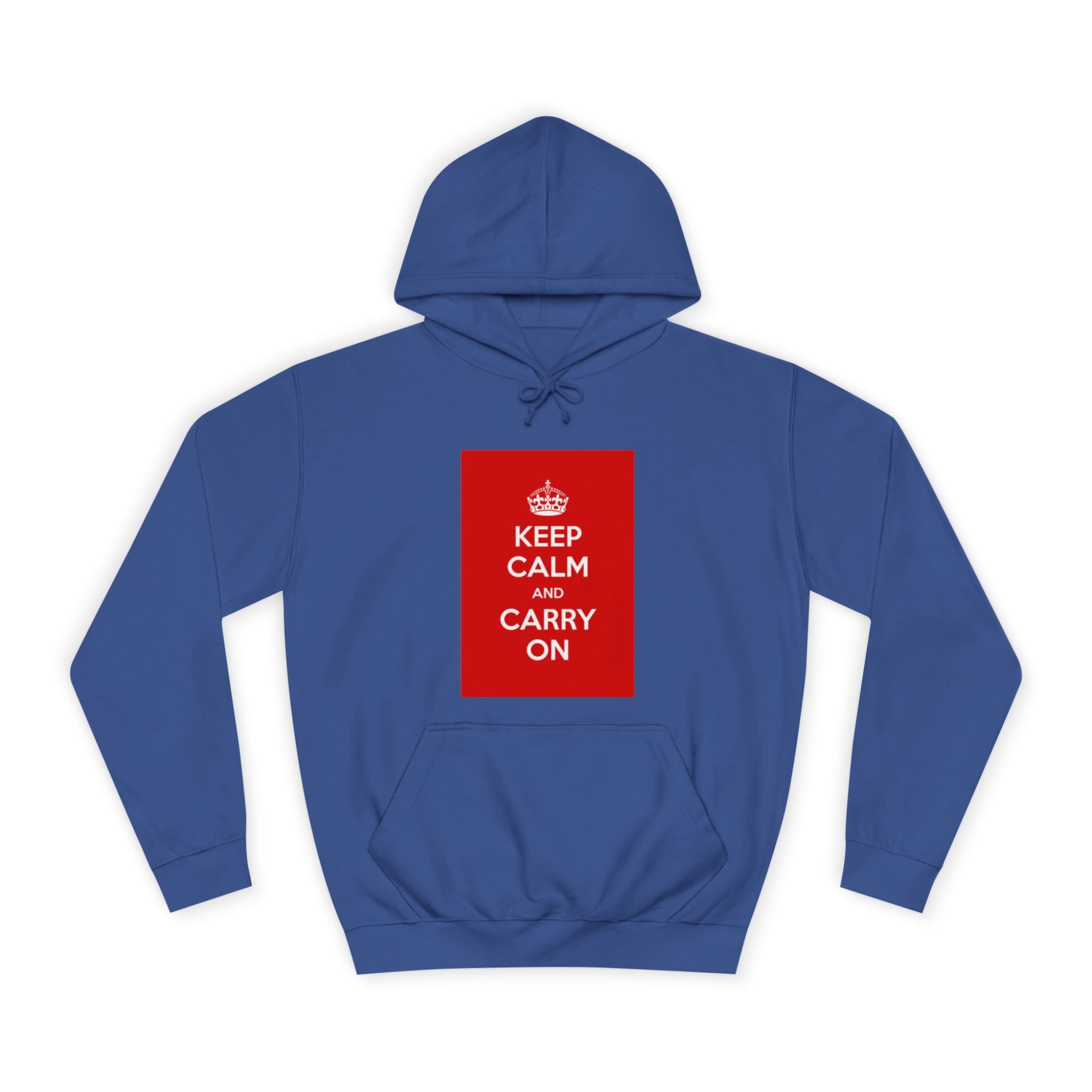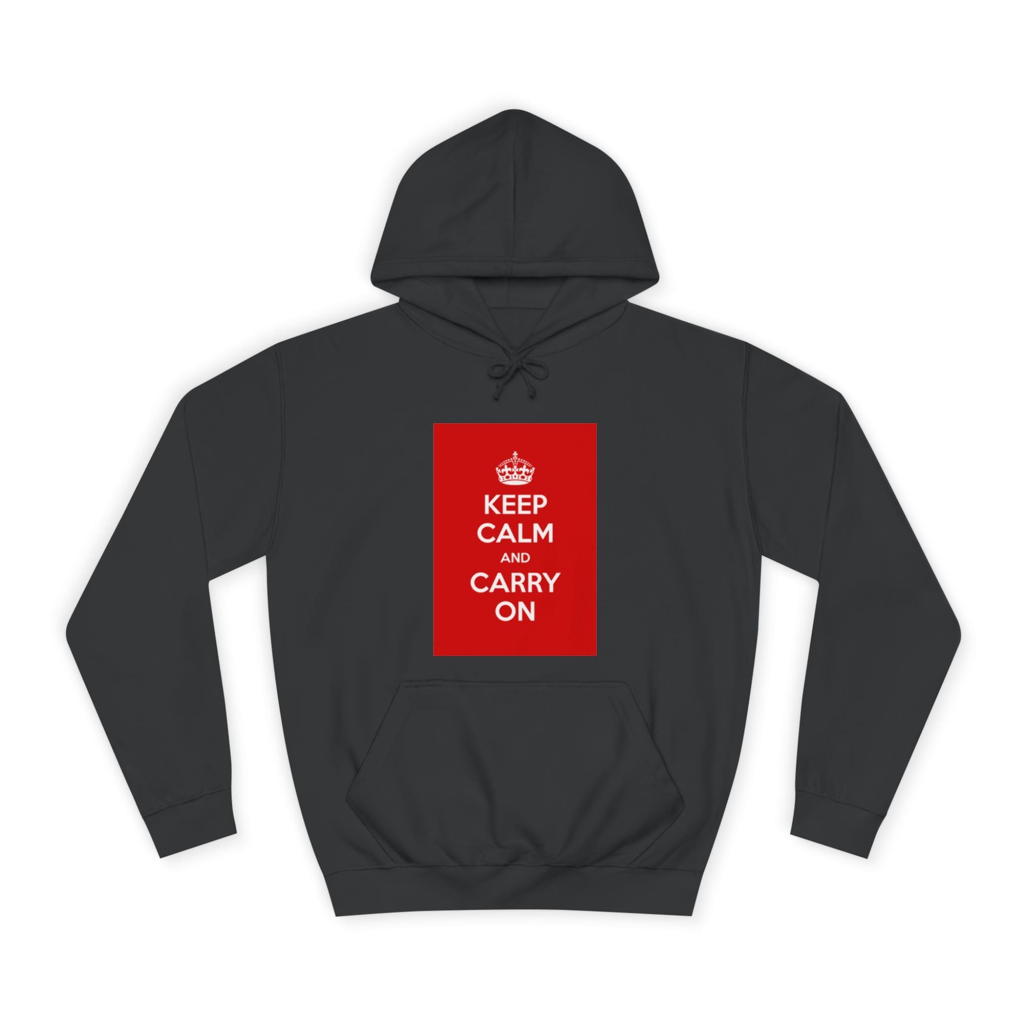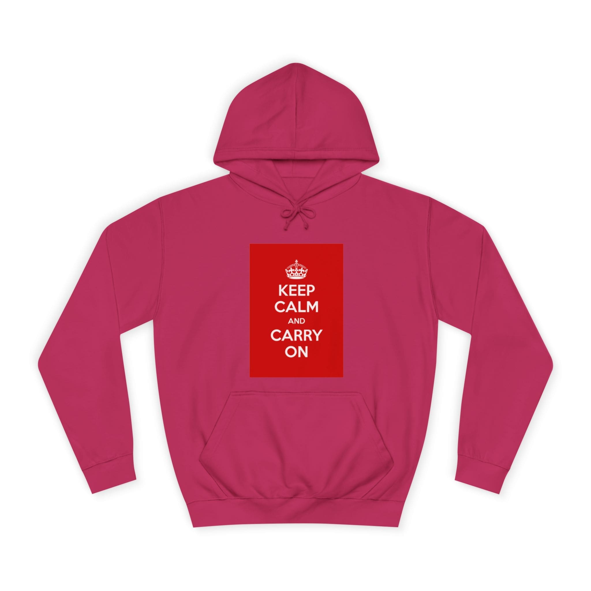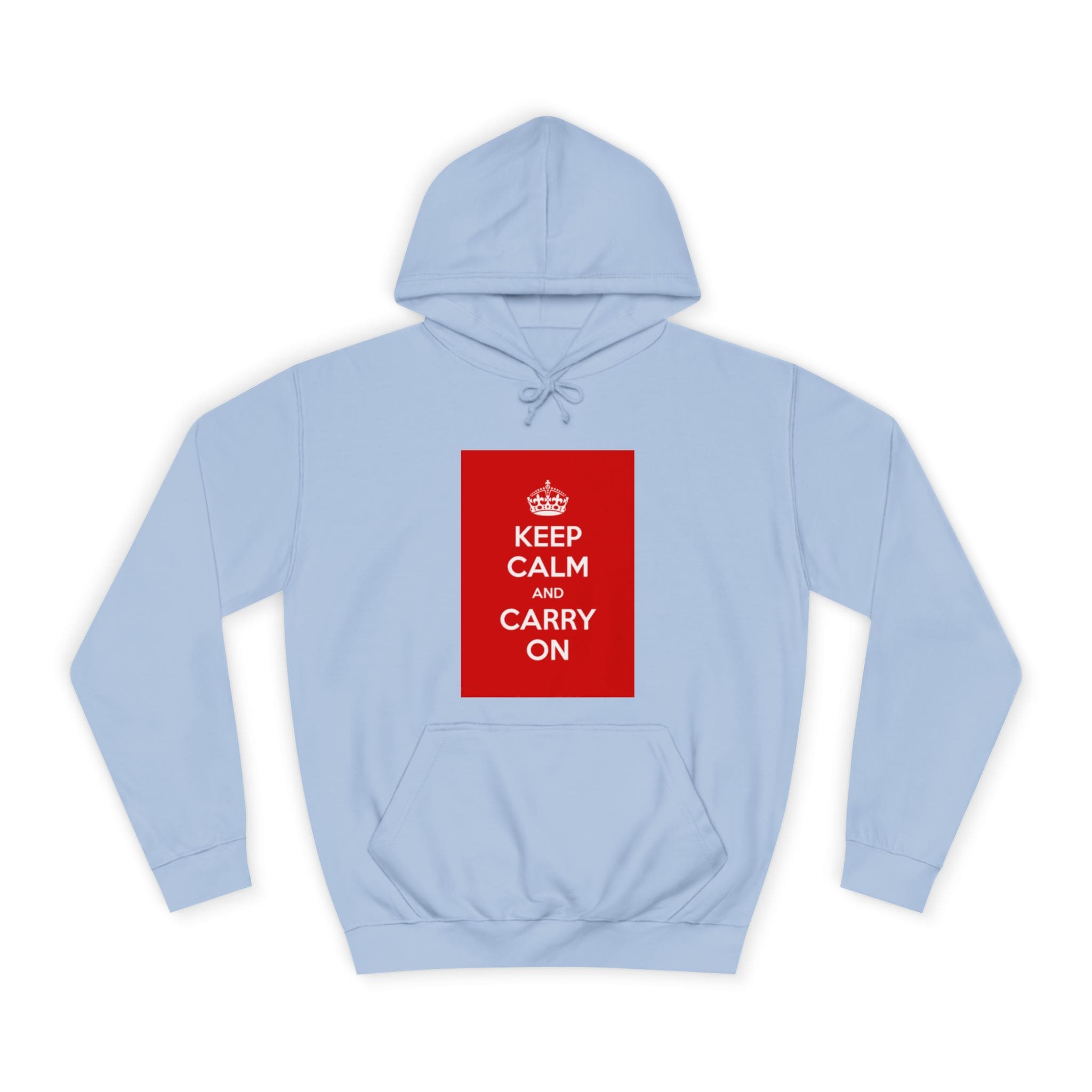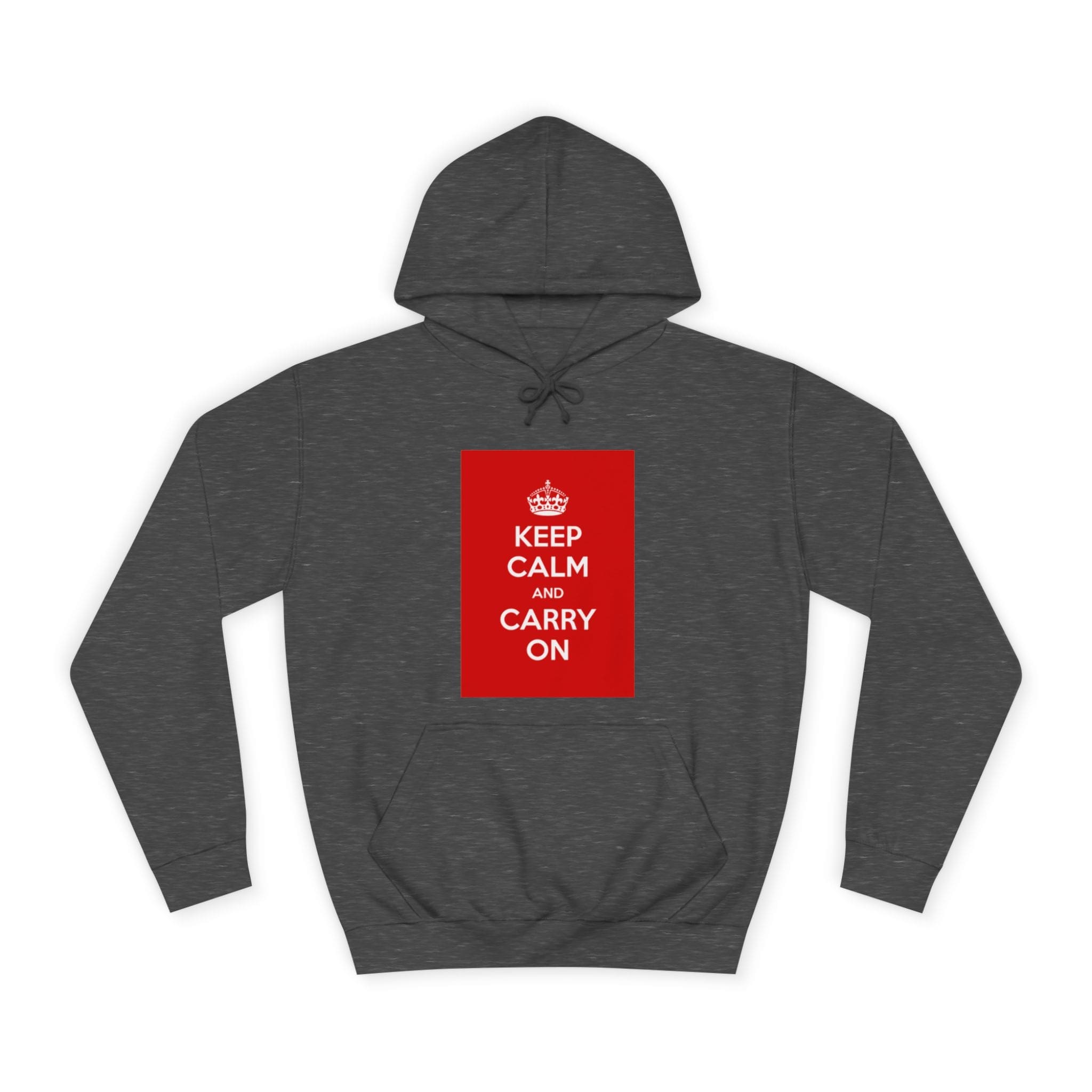 A cozy, lived-in hoodie that quietly channels classic British resilience. The clean white canvas frames a bold red “KEEP CALM AND CARRY ON” panel — a simple statement that feels both nostalgic and reassuring. Soft, medium-weight fabric and a roomy, loose fit invite long commutes, late-night study sessions, or slow weekend mornings. The kangaroo pouch keeps hands warm while the adjustable hood tucks close against wind and rain. Thoughtful construction — side seams for shape retention, a tear-away label, and responsibly certified materials — makes this a reliable layer you’ll reach for again and again. Wear it when you need a calm reminder or when you want your outfit to speak softly but confidently.