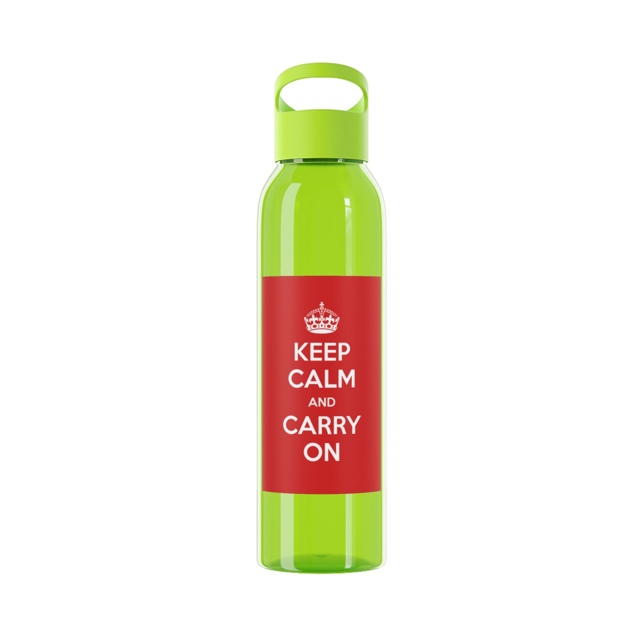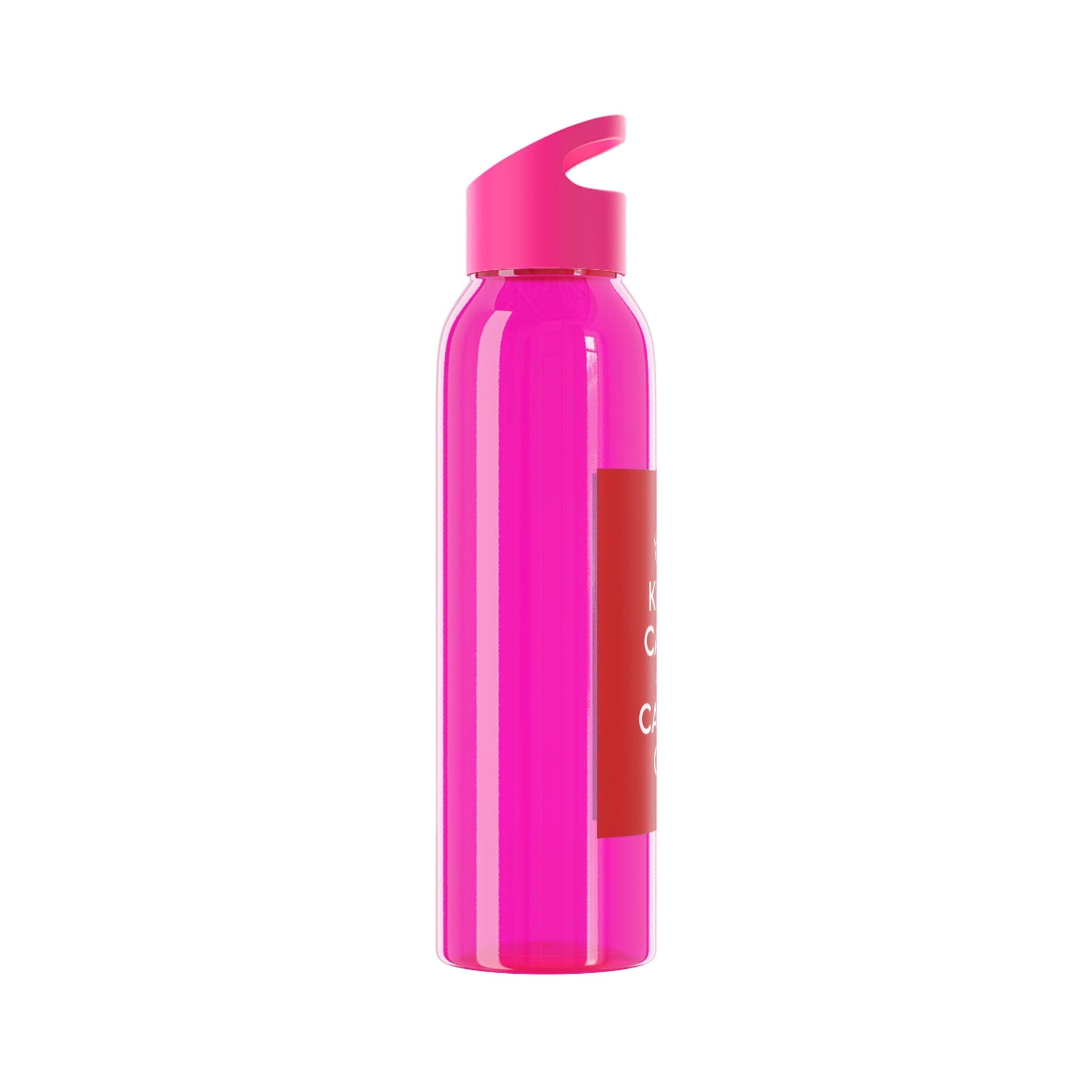 This slim, clear Sky water bottle brings bright, bold color into your everyday flow. Made from durable Eastman Tritan™, it holds your favorite drinks without clouding or staining, while the twist-on spill-resistant lid with a sturdy hand loop keeps it easy to carry from desk to commute. The single-wall design keeps the bottle lightweight and pocket-friendly; choose from seven vibrant color accents to match your mood or that ‘keep calm’ vibe shown here. REACH certified and built for adult use, it’s designed for city runs, studio sessions, and calm moments between meetings—simple, reliable hydration that looks intentional.